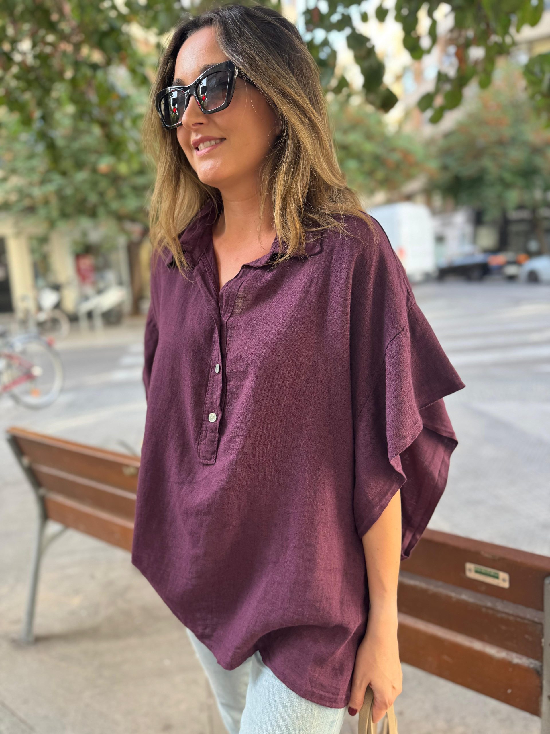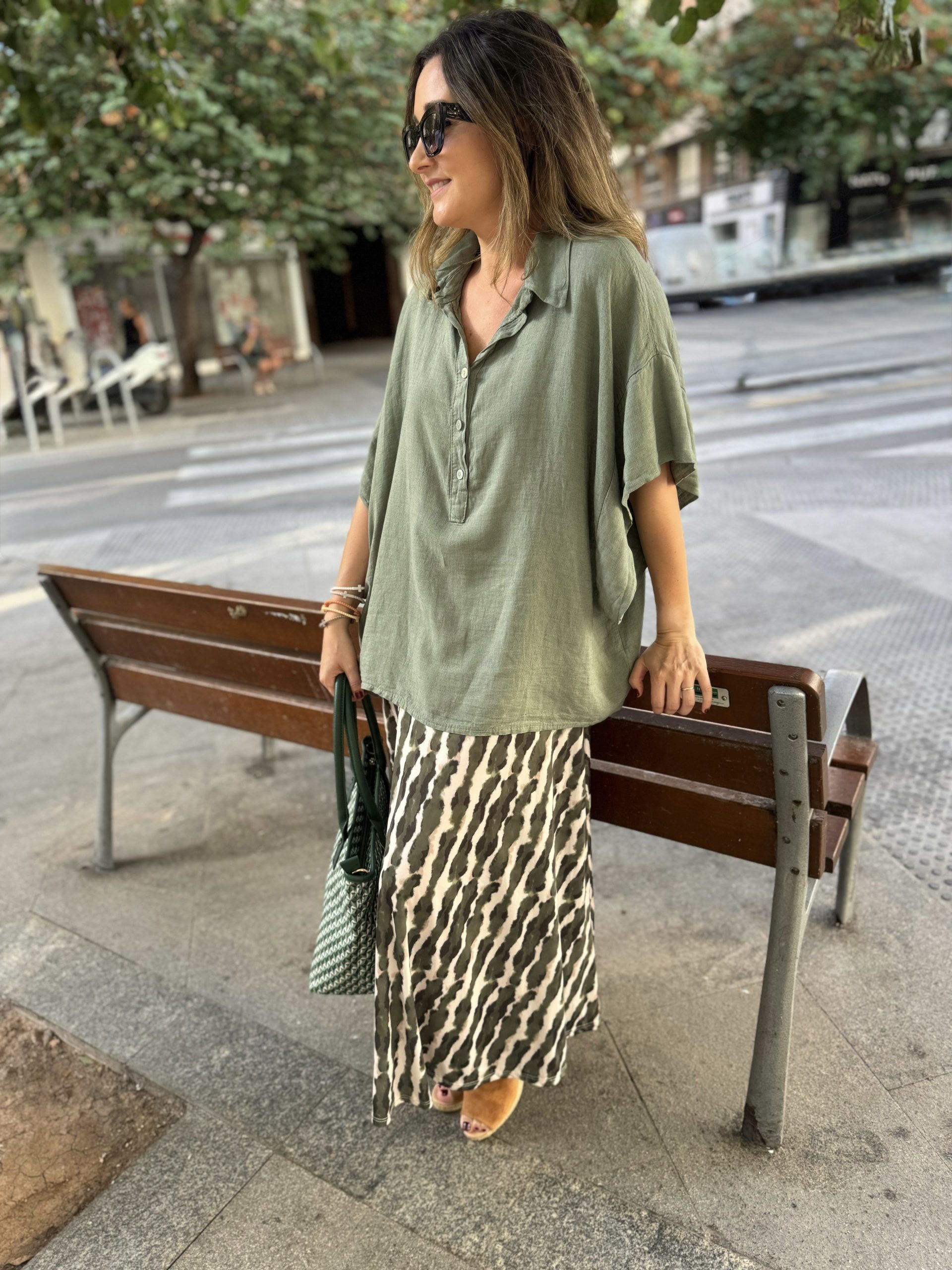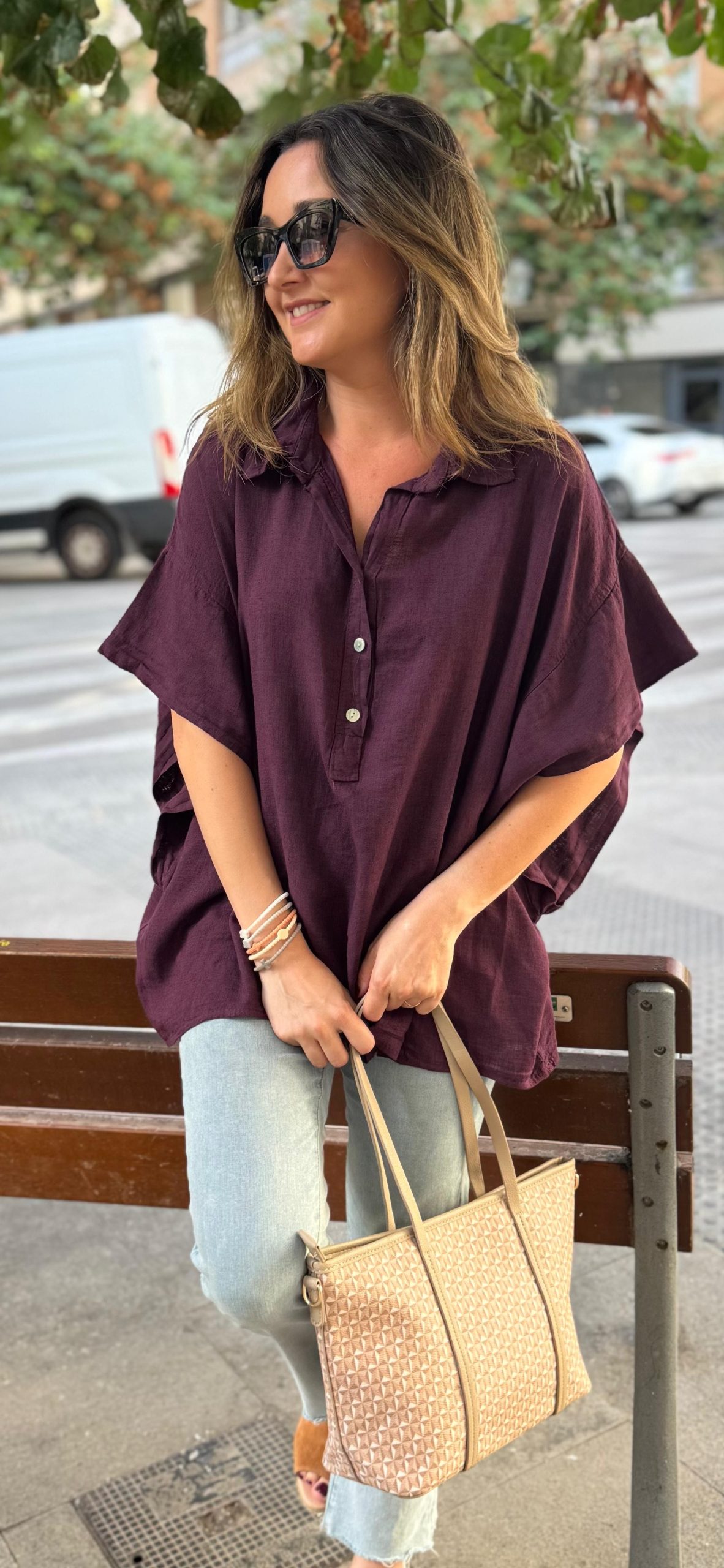 CAMISA DE MANGA CORTA OVERSIZE CON TRES BOTONES. TALLA ÚNICA. HASTA UNA 42/44