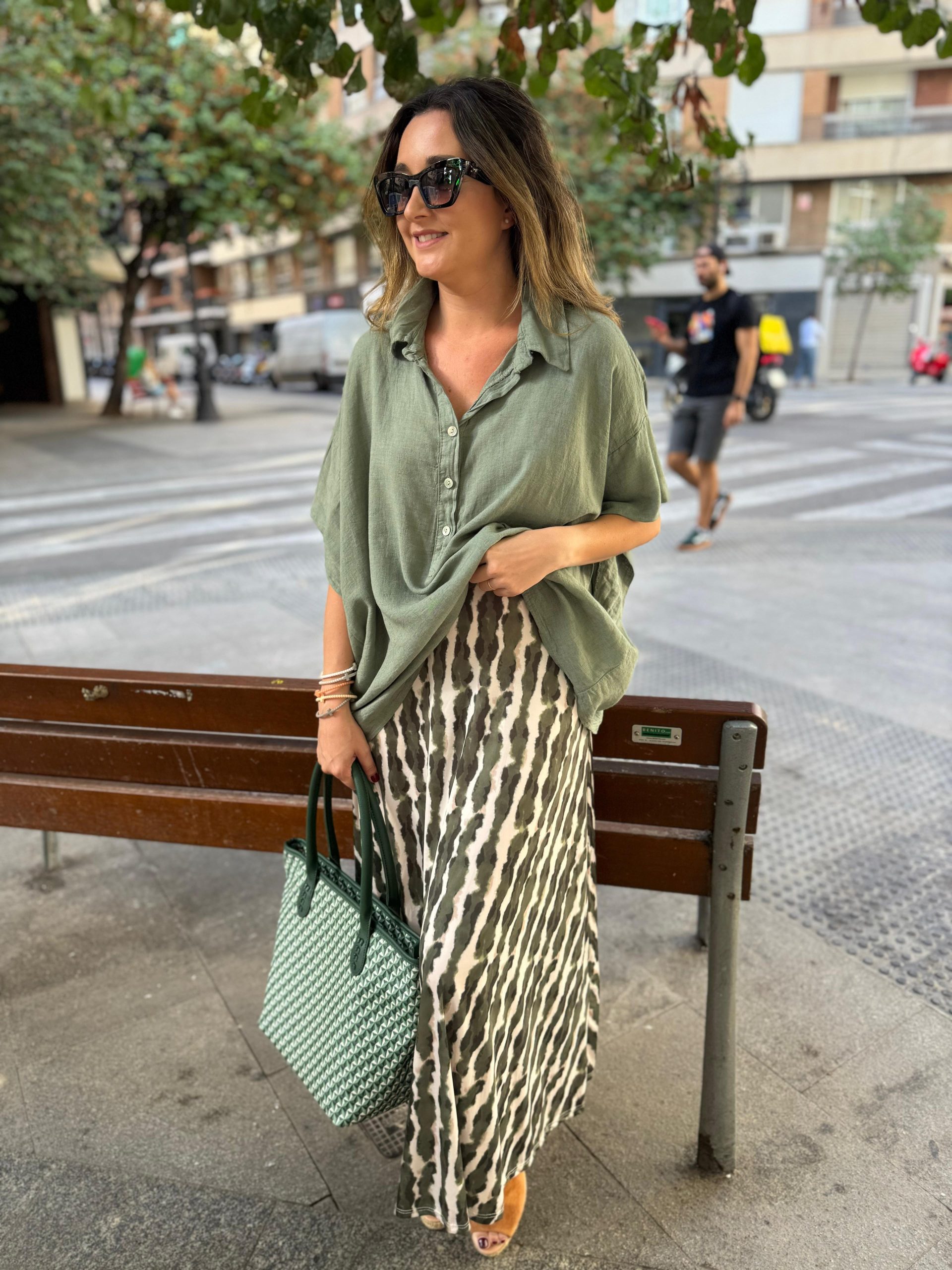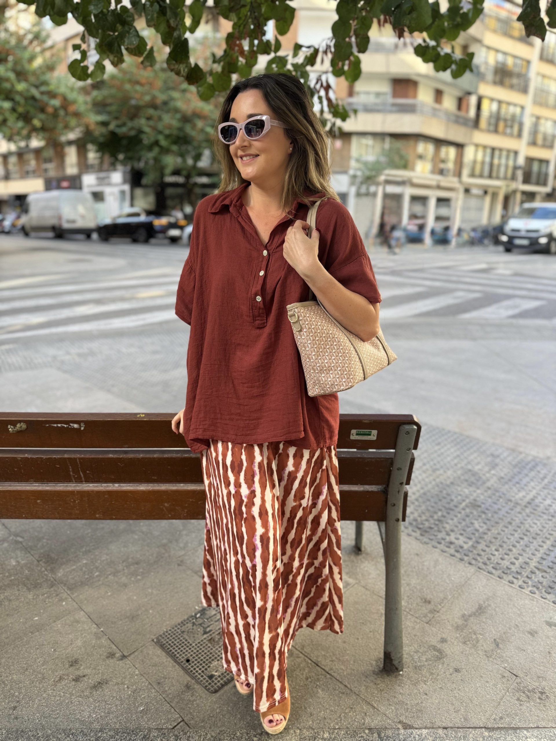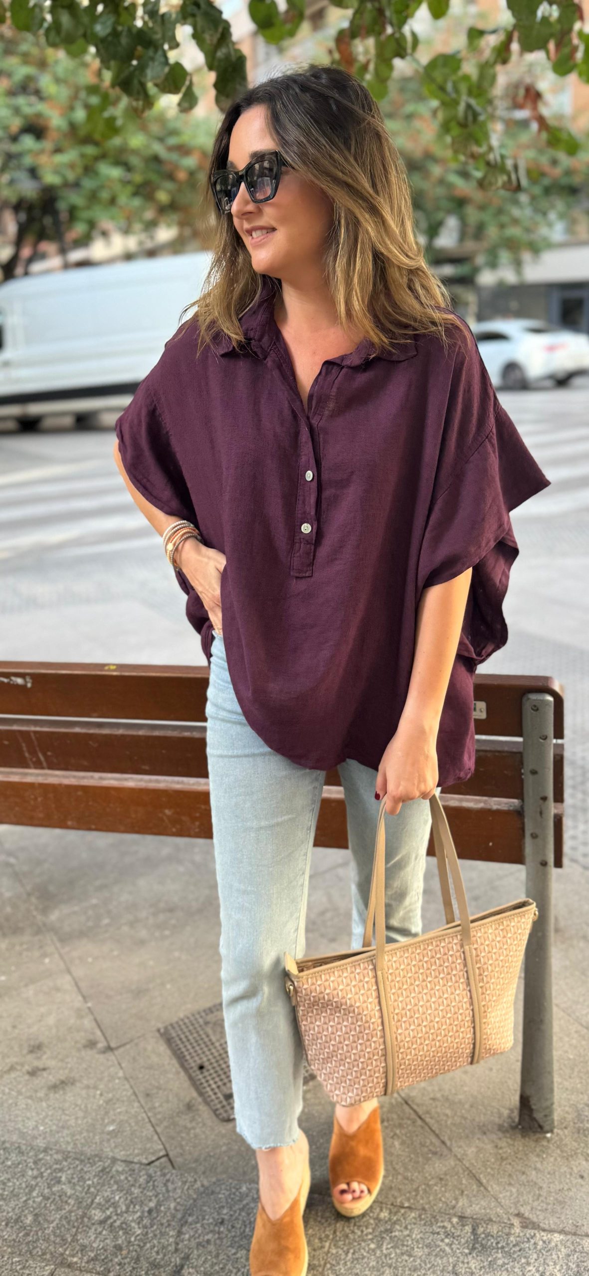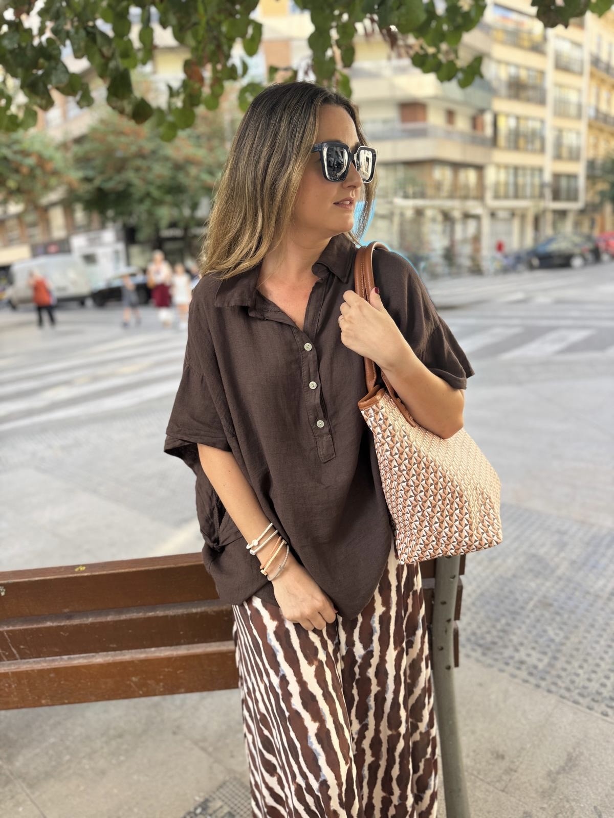 CAMISA DE MANGA CORTA OVERSIZE CON TRES BOTONES. TALLA ÚNICA. HASTA UNA 42/44