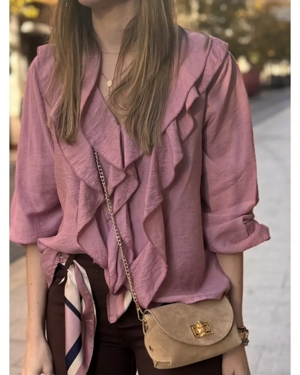 CAMISA LISA CON CHORRERAS DELANTERAS. TALLA ÚNICA.