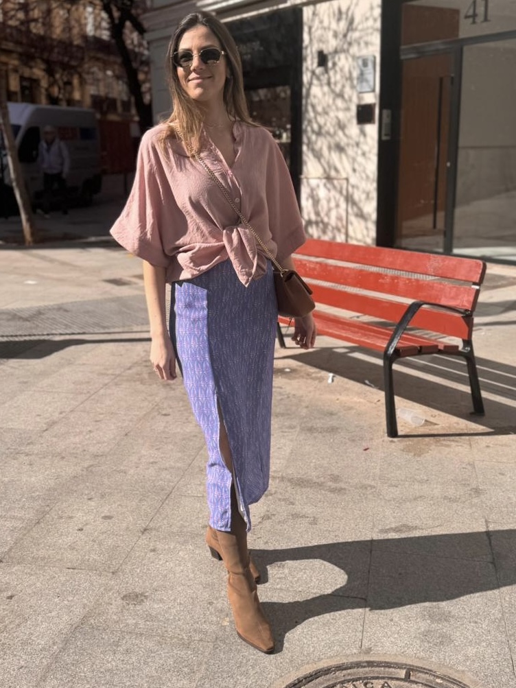 FALDA MIDI ESTAMPADA DE GASA CON ABERTURA LATERAL Y GOMA EN CINTURA. APROXIMADAMENTE HASTA UNA 38/40.