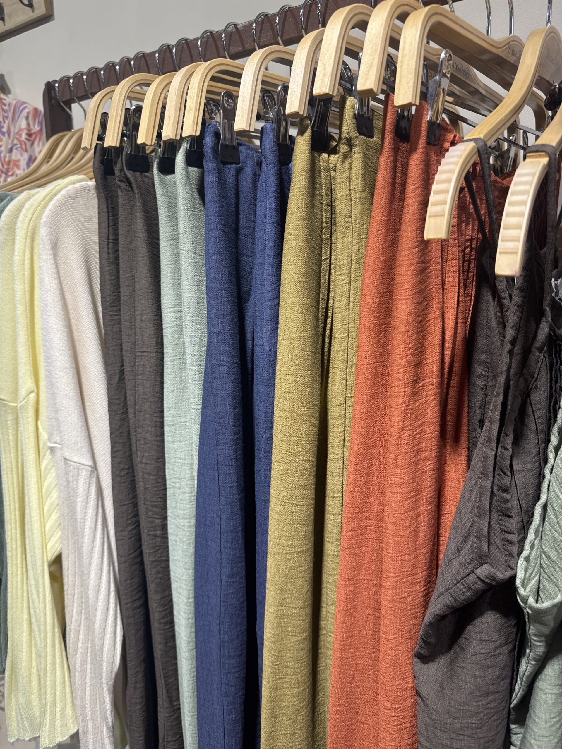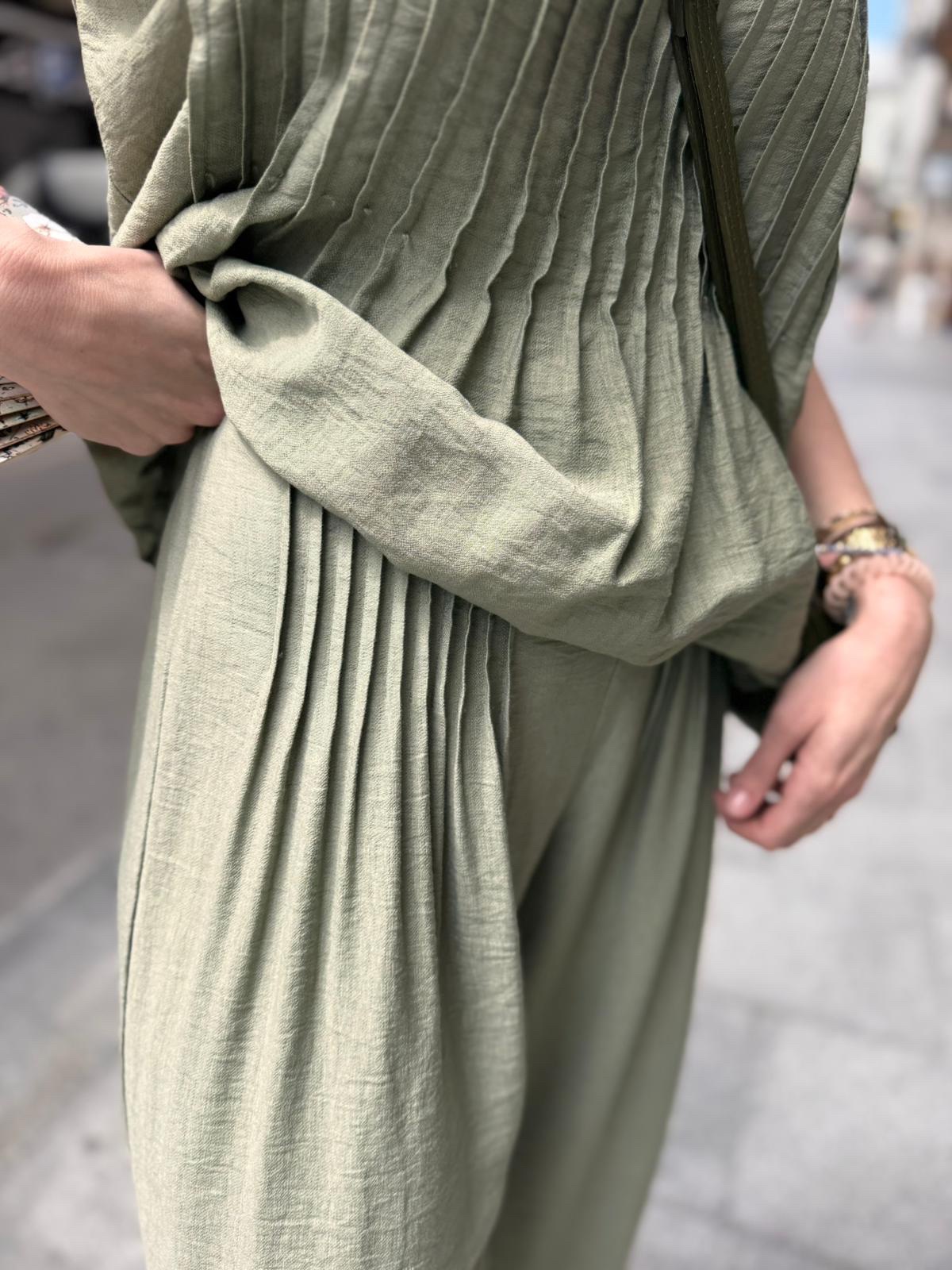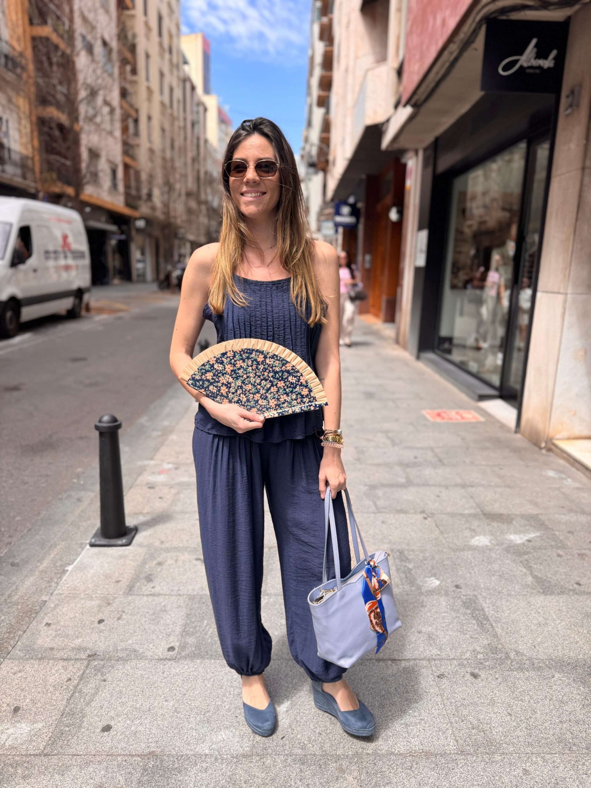 PANTALÓN DE VISCOSA CON JARETAS DELANTERAS Y GOMA EN EL BAJO, ESTILO BOMBACHO. A JUEGO CON EL TOP TIRANTES JARETAS. APROX HASTA UNA 40.