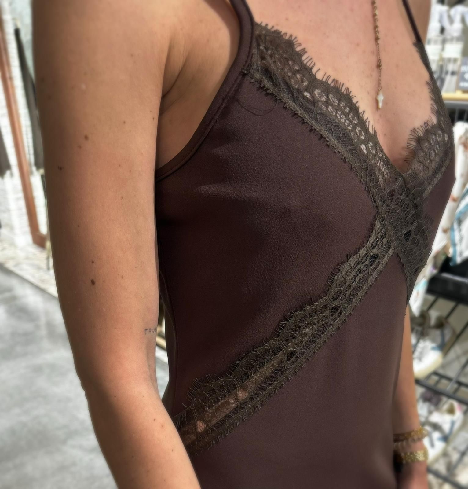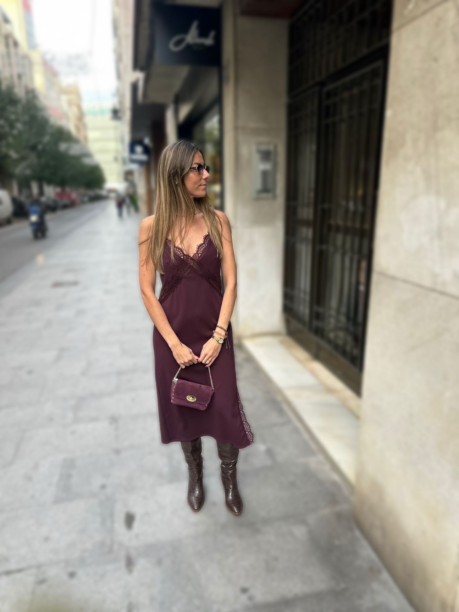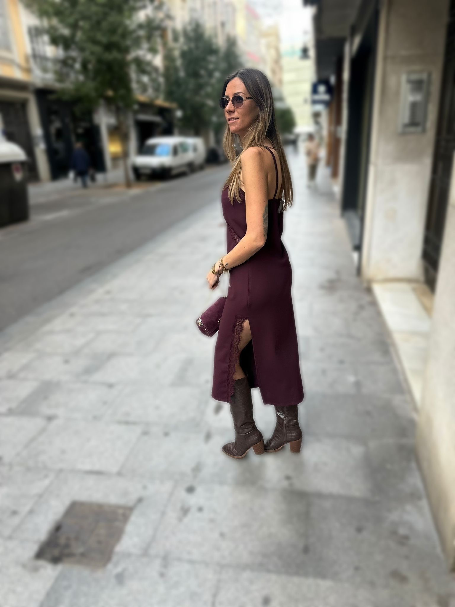 VESTIDO DE TIRANTES CON ENCAJE Y ABERTURA. TALLA ÚNICA. HASTA UNA 40 aprox.
