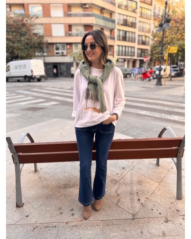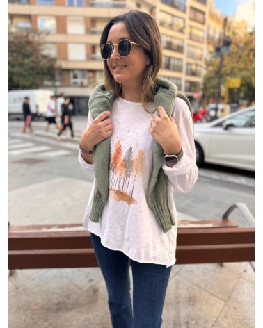 CAMISETA BÁSICA DE MANGA LARGA CON EL DIBUJO DE UN BOSQUE EN EL CENTRO. TALLA ÚNICA.