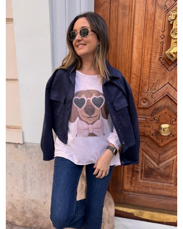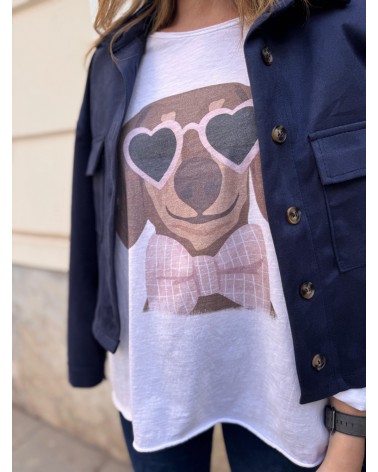 CAMISETA DE MANGA LARGA BÁSICA CON EL DIBUJO DE UN TECKEL. TALLA ÚNICA.