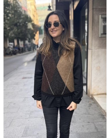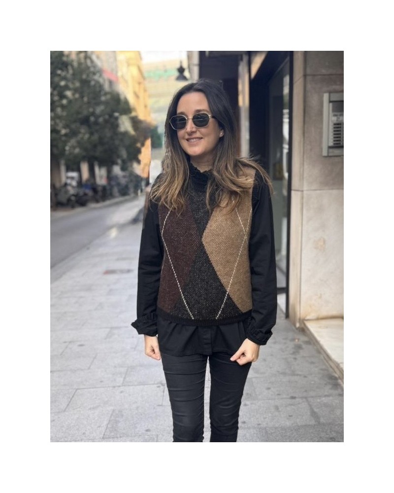 CHALECO DE PUNTO CON ESTAMPADO ROMBOS. TALLA ÚNICA.
