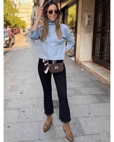 JERSEY BÁSICO DE CUELLO ALTO CON TRENZAS PEQUEÑITAS EN PUÑOS Y BAJO. TALLA ÚNICA. ¡ESTE MODELO ES CORTITO!